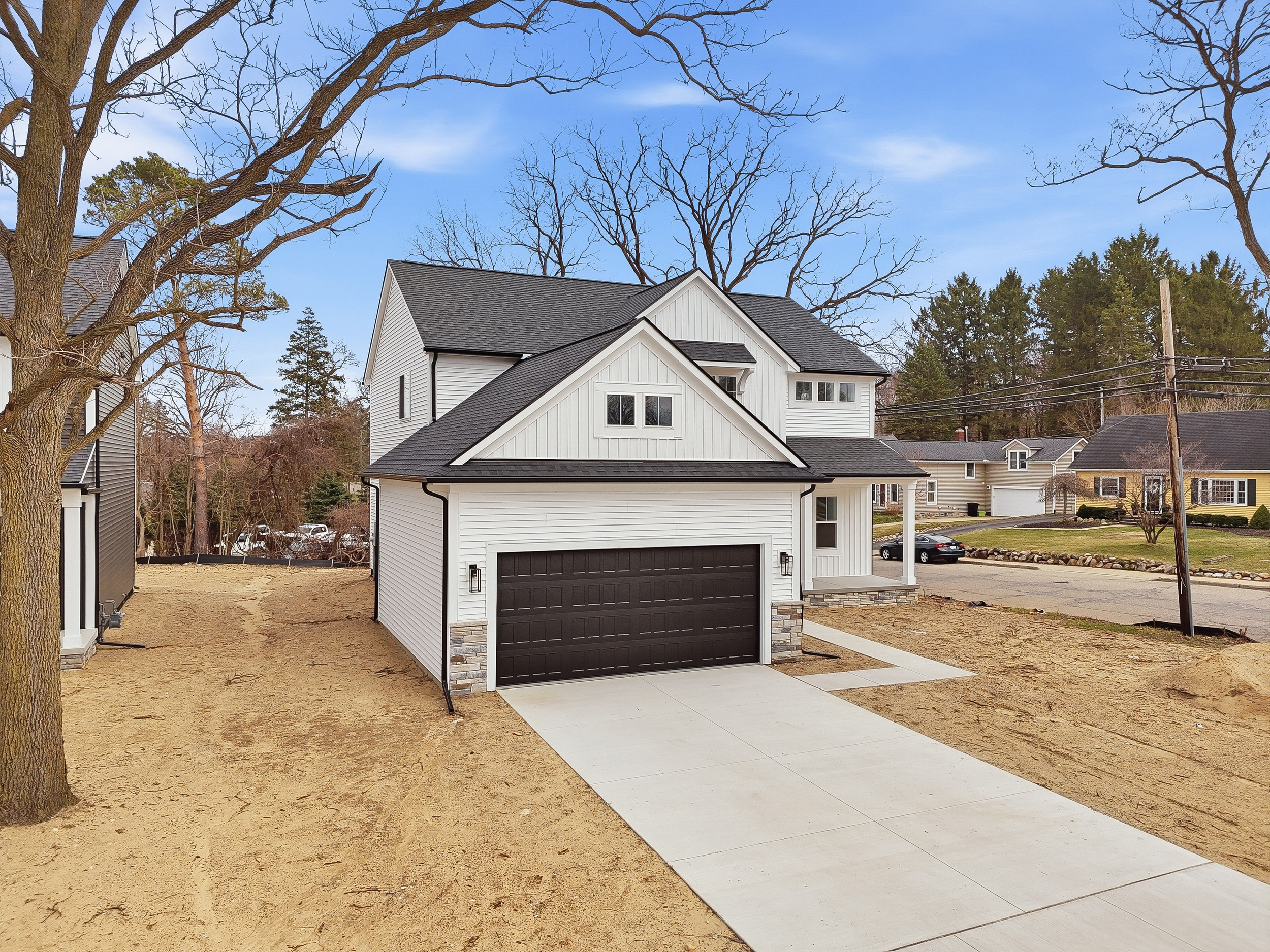 Stunning new construction Craftsman-style colonial located in the highly desirable Village of Milford! This 4-bedroom, 2.5 bath home offers the perfect blend of modern design and timeless character, all within walking distance to downtown Milford, local parks, and dining. Step inside to an open-concept floor plan designed for today’s lifestyle. The gourmet kitchen features quartz countertops, a large center island, and an oversized walk-in pantry, seamlessly flowing into the spacious eat-in nook with a doorwall leading to the backyard perfect for indoor-outdoor living. The inviting family room showcases a sleek electric linear fireplace, creating a warm and contemporary focal point. Upstairs, the primary suite offers a true retreat with a large walk-in closet and a luxurious en-suite bath complete with dual sinks, quartz countertops, a beautifully tiled shower, and a standalone soaking tub. Three additional generously sized bedrooms, each with ample closet space, along with a full bath and convenient linen closet, complete the second floor. Additional highlights include a two-car attached garage, full basement offering endless possibilities, and quality finishes throughout. Photos are of actual home. Enjoy the charm of village living with the convenience of new construction—schedule your showing today!